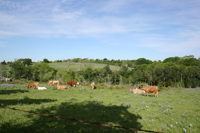 The bluebonnet ride was a lot of fun but it was also emotional a few times. One of the spots we stopped to take some pictures had a pasture of cows, including a calf that was nursing. The cows had plenty of room to roam, a variety of grasses to eat, and from what I could tell they seemed content.
